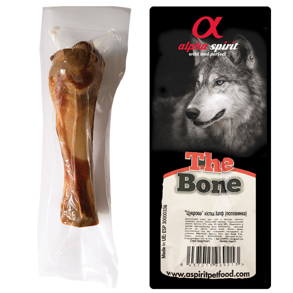 Кістка Альфа Спіріт – це 100% справжня іспанська шинкова кістка Хамон Серано, термічно оброблена і висушена на відкритому повітрі, зі збереженням всіх своїх корисних властивостей та смакових якостей.