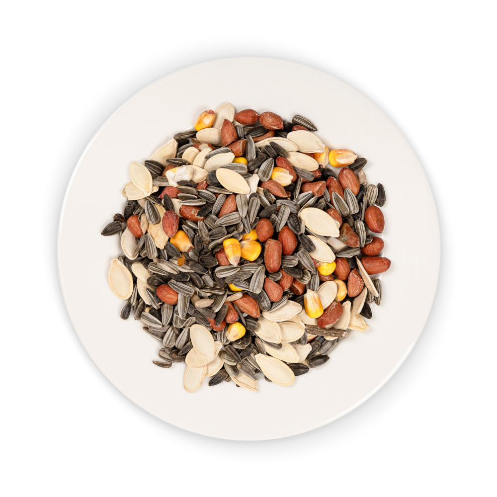 Склад: насіння соняшника, насіння соняшнику сірого, кукурудза, арахіс, насіння гарбуза