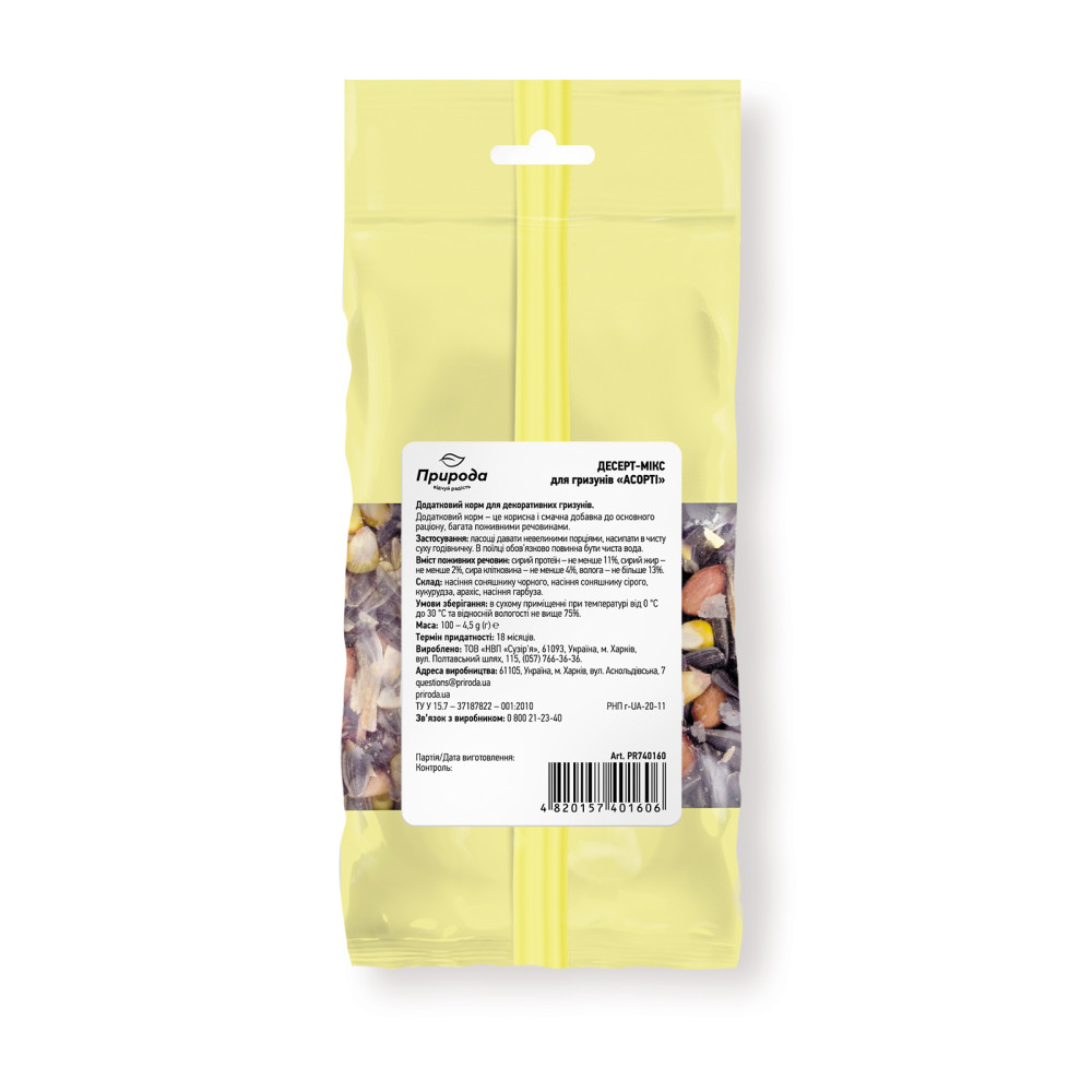 Десерт буде прекрасним доповненням щоденного раціону гризунів, забезпечить вихованців необхідною кількістю рослинних жирів, вітамінів і амінокислот. Завдяки щадній технології обробки інгредієнтів, вони зберігають максимум поживних речовин і апетитний натуральний аромат. Регулярне годування десертом сприяє підтриманню хорошого самопочуття декоративних гризунів, нормалізації травлення.