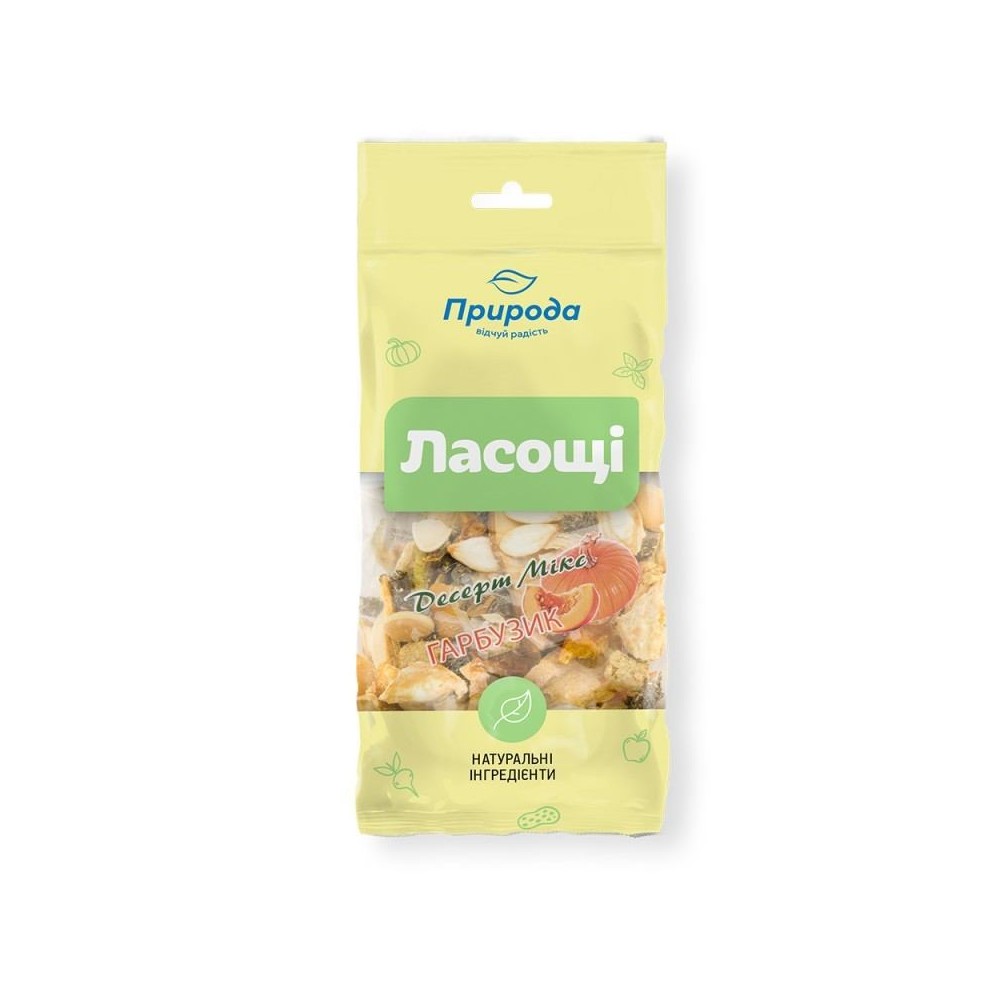 Зневоднена стружка гарбуза становить основну частину десерту. Вуглеводи і пектини, що містяться в гарбузі, сприяють правильному обміну речовин, нормалізують травлення, покращують загальний стан улюбленця. Добавки – трав'яний і зерновий грануляти, буряк – роблять ласощі ще смачнішими і кориснішими, також вони є джерелом вітамінів, клітковини, мікроелементів і цінних амінокислот.