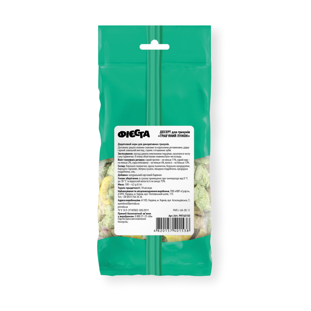 Десерт «Трав'яний лужок» завдяки великій кількості клітковини нормалізує травлення, а це запорука міцного здоров'я, гарного настрою і прекрасного зовнішнього вигляду гризуна.