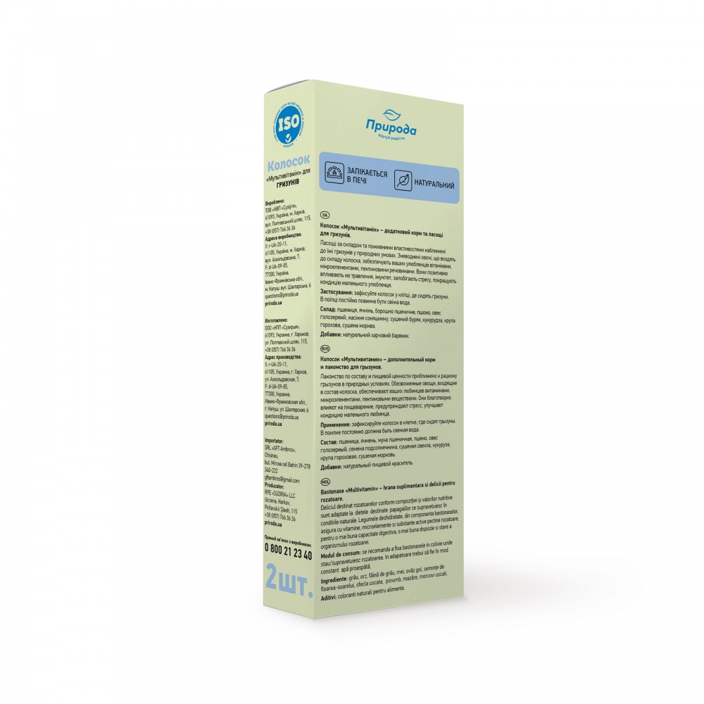 Оптимальний склад ласощів: різноманітні зернові культури, фрукти і овочі – забезпечує улюбленців рослинними протеїнами, вуглеводами, пектиновими речовинами. При вживанні ласощів травлення гризуна функціонує без порушень.