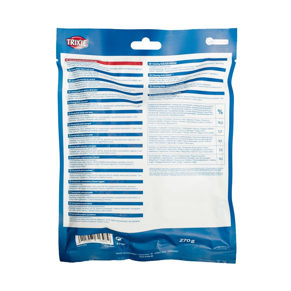 Склад: сиром'ятна шкіра, м'ясо качки (40%), крохмаль кукурудзяний, гліцерин.