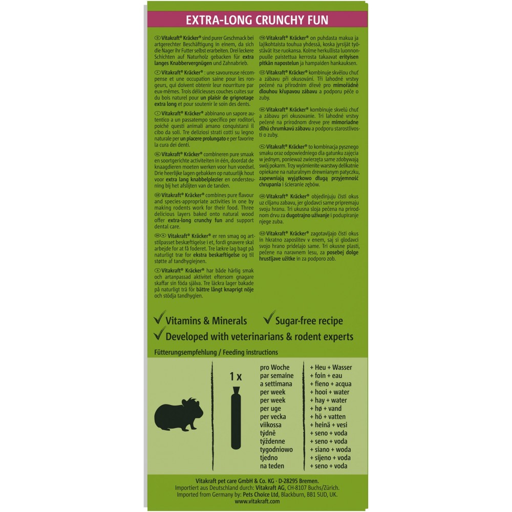 Крекер для морських свинок з фруктами - смачне і корисне доповнення до основного раціону вихованця. Ласощі є додатковим джерелом вітамінів і мінералів. Виготовлений за унікальною технологією 3-х ступеневого запікання і не містить цукру. В упаковці 2 крекери.