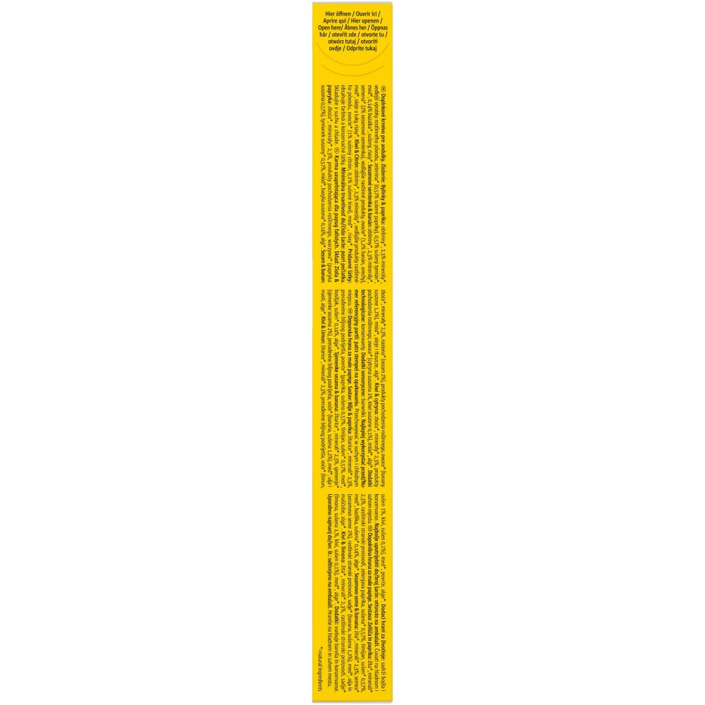 Склад: злаки, насіння (кунжутне насіння 2%), мінерали, продукти рослинного походження, фрукти (банан сушений 0.81%), олії та жири, мед, цукор, морські водорості.