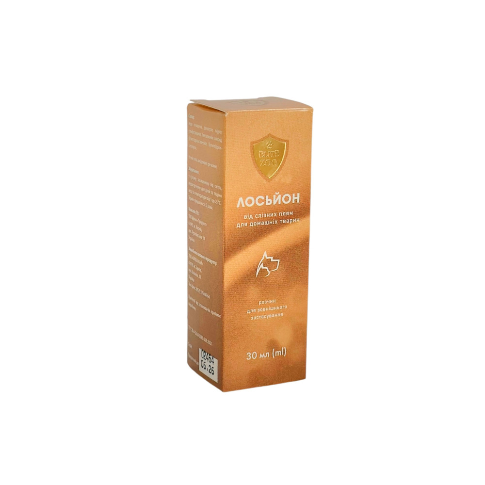 Для видалення слізних плям навколо очей тварин застосовувати невелику кількість лосьйону раз на день. У важких випадках можна застосовувати до трьох разів на день впродовж мінімум одного тижня.