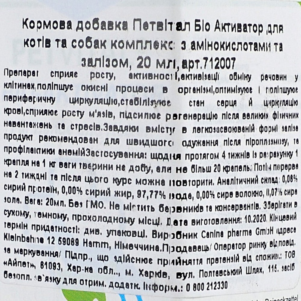 Дозування: На 1 кг ваги — 1 крапля. Максимальна доза - 20 крапель. Приймати разом з кормом протягом 4 тижнів, потім перервати лікування на 2 тижні і знову відновити.