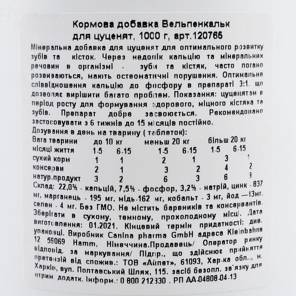 До складу Welpenkalk входять мінеральні речовини, такі як цинк, мідь, йод, марганець, кобальт, селен. Цинк і селен - необхідні компоненти для імунної системи, сприяють засвоєнню вітамінів групи В, захищають хімічні структури від окислення, єко факторами багатьох ферментів і покращують обмінні процеси. Марганець - бере активну участь в білковому і вуглеводному обміні, стимулює діяльність ферментів, впливає на засвоєння кальцію і фосфору. Мідь і кобальт - позитивно впливають на процеси кровотворення і тканинного дихання.