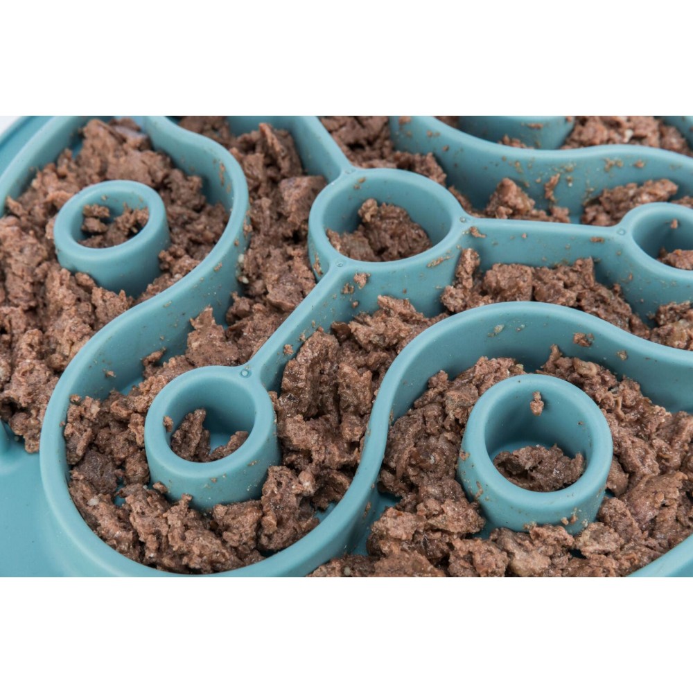 Повільне поїдання корму є чудовим способом попередити у вашого улюбленця переїдання та спричинені ним проблеми – надмірне газоутворення, ожиріння. Прекрасним помічником для організації процесу повільного поїдання стане цей килимок від Trixie.