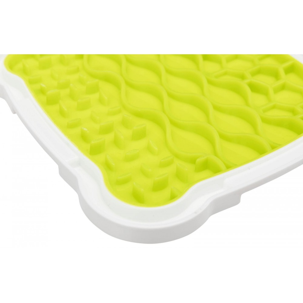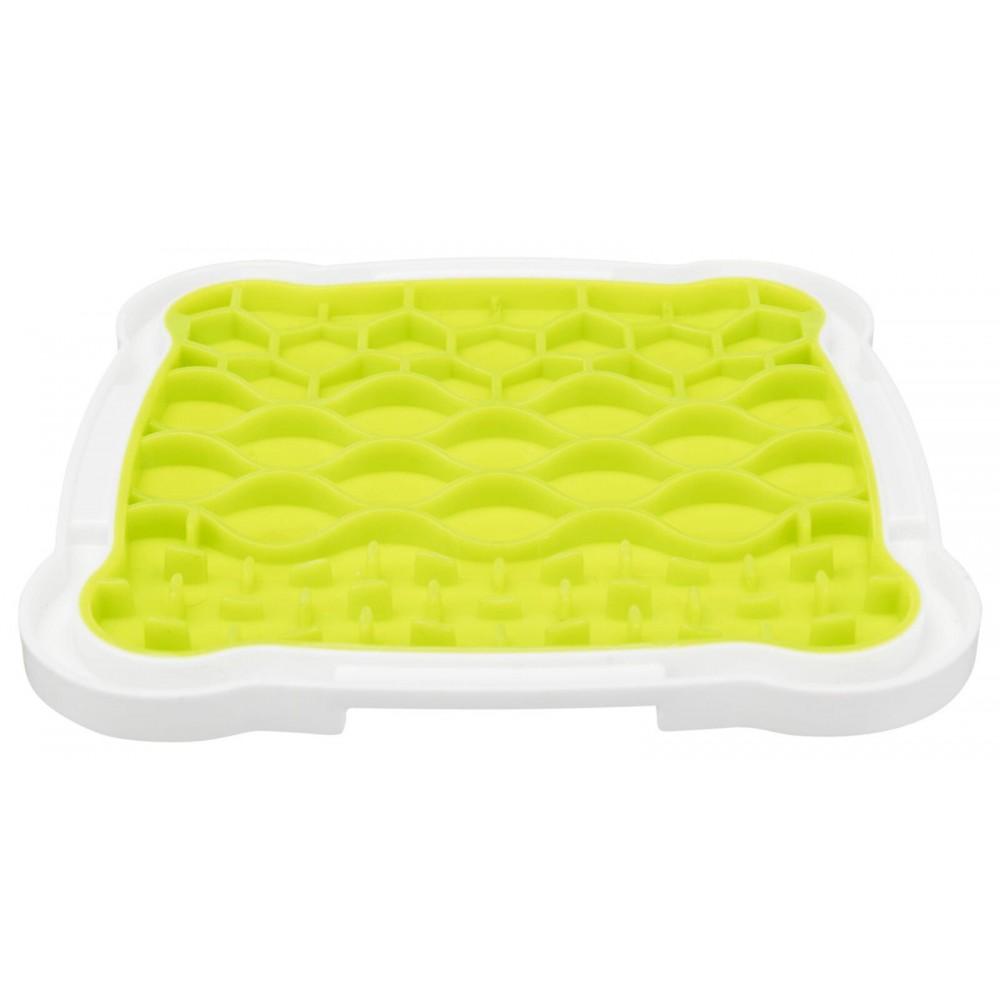 Повільне поїдання корму є чудовим способом попередити у вашого улюбленця переїдання та спричинені ним проблеми – надмірне газоутворення, ожиріння. А облизування розслаблює собаку та забезпечує періоди відпочинку. Оптимальним помічником для цієї мети є миска Trixie Lick'n'Snack. Через маленькі отвори або борозенки ваш чотирилапий бере за раз лише невелику кількість ласощів чи корму, і цей процес надовго займає його увагу. Ви можете нанести на тарілку різні пасти або навіть вологий корм, який ваш собака потім із задоволенням буде вилизувати.