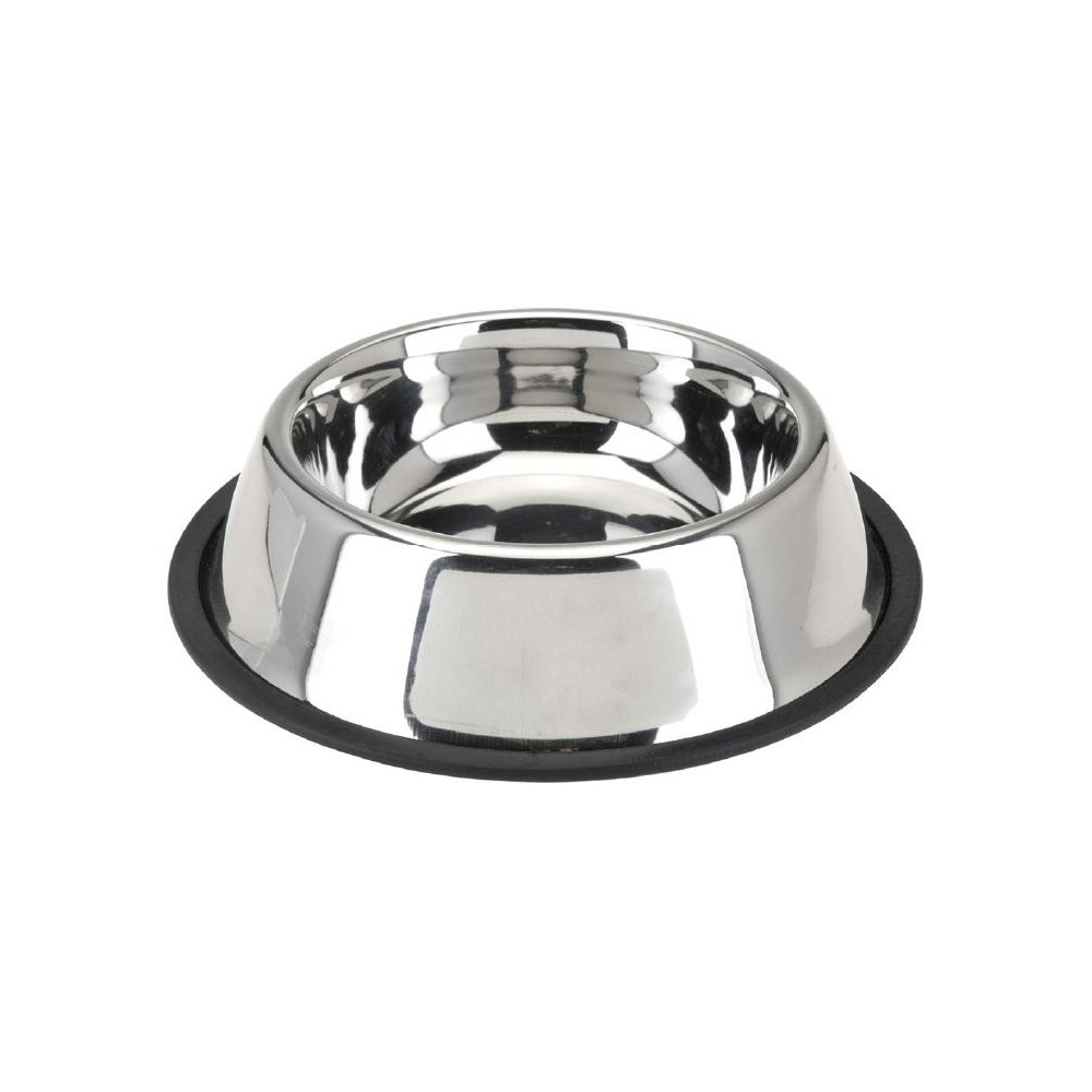 Оберіть для свого улюбленця миску SWI з гумовим обідком. Миска виготовлена зі стійкої до бактерій нержавіючої сталі, що гарантує її довговічність і безпеку для вихованця. Миску легко мити. Гумовий обідок робить миску нековзкою, а спеціальна форма не дозволяє їй перевертатися.
