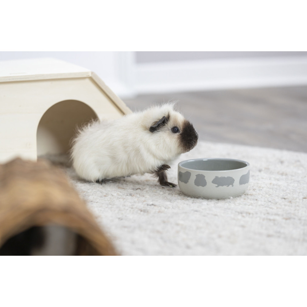 Ця миска Trixie для гризунів має класичний дизайн, цікаві кольори та веселий принт. Виготовлена з безпечного матеріалу, стійка до подряпин. Проста в догляді, можна мити в посудомийній машині.