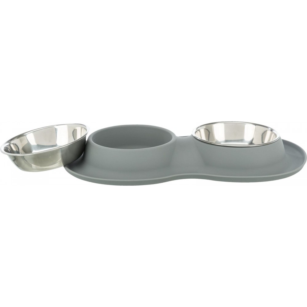 Комплект Trixie із 2-ох мисок – це дуже практичне рішення, адже у вашого песика відразу з’являється посуд і для води, і для їжі. Силіконова основа не дозволяє мискам перевертатися чи ковзати по підлозі та полегшує підтримувати чистоту на місці для годування.