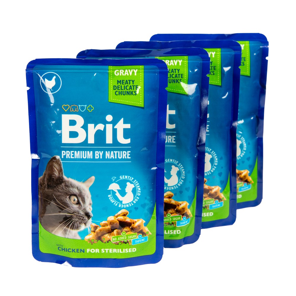 Brit Premium Cat pouch Chicken Slices for Sterilised – повноцінний вологий корм преміумкласу для стерилізованих котів.