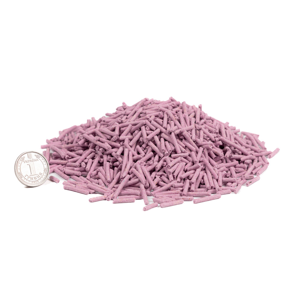 Склад: спресована маса соєвих волокон, харчовий крохмаль, гуарова камедь, есенція лаванди. Не містить шкідливих для здоров’я тварин та людей речовин. Без ГМО.