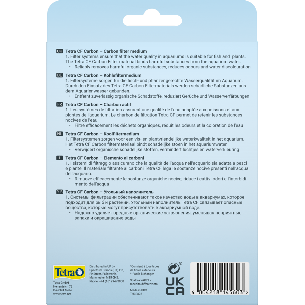 Оригінальний наповнювач для фільтра Tetra «Carbon». Завдяки активованого вугілля - ефективно бореться із забрудненнями, тим самим очищає воду від шкідливих речовин