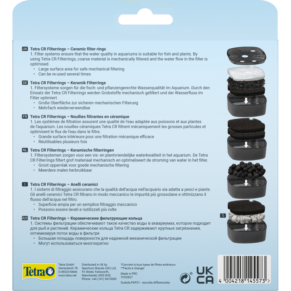 Оригінальний наповнювач для фільтра Tetra «Filter Rings». Завдяки своїй структурі у вигляді керамічних кілець з комплексною системою пор, забезпечується оптимальне середовище для корисних бактерій. Біокільця сприяють хорошому зниження нітратів і аміаку. Наповнювач не вимагає спеціального догляду, що полегшує його використання