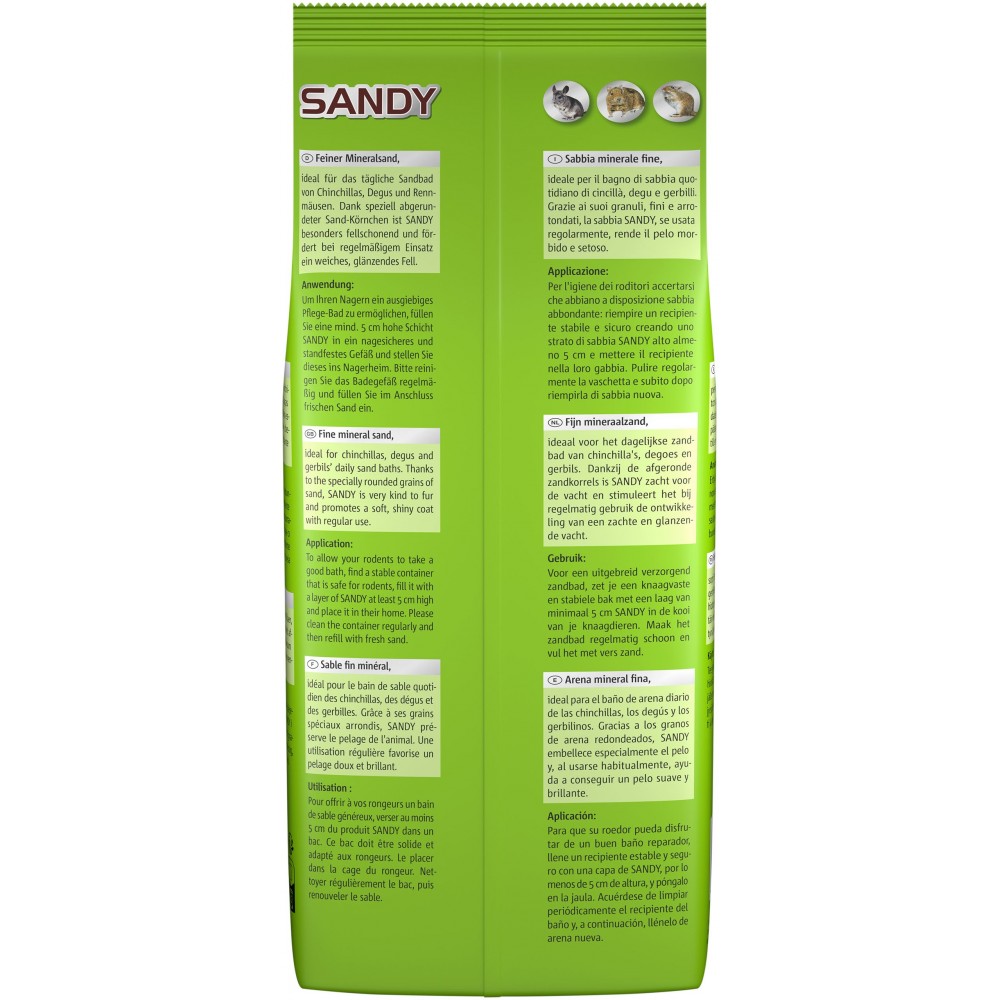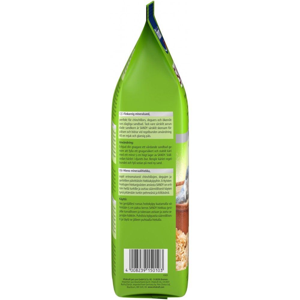 Догляд за шерстю і підтримка її в хорошому стані вимагає щоденного прийому пісочних «ванн». Після купання в спеціальному піску Sandy, шерсть вашого улюбленця стає на диво шовковистою і м'якою. Vitakraft Sandy - це дрібний пісок з апульгіту спеціальної круглої форми, для особливо дбайливого догляду.