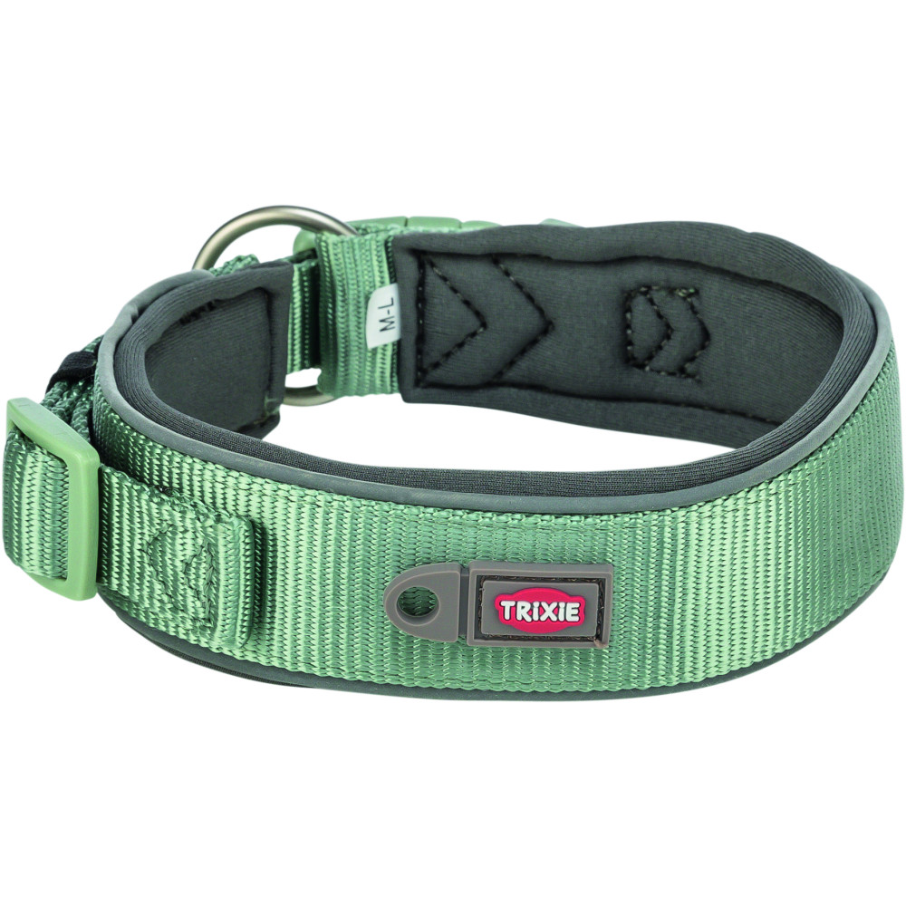 Нашийник Trixie Premium екстраширокий – це високоякісний міцний аксесуар, який забезпечить комфорт і безпеку вашому собаці під час прогулянок. Неопренова підкладка робить його м'яким і зручним для носіння. Нашийник має пряжку із захистом від натягнення, яка запобігає випадковому розстібанню. Світловідбиваючі елементи нашийника допомагають песику стати помітним у темряві для водіїв. Нашийник має петлю для кріплення жетона або мигалки, а також можливість кріплення трекера на вузькій застібці.