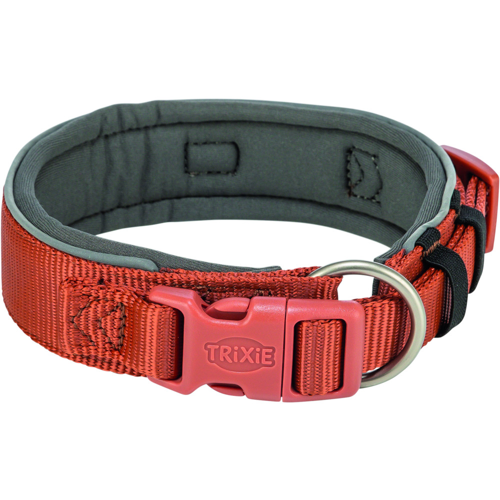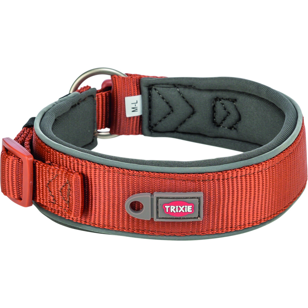 Нашийник Trixie Premium екстраширокий – це високоякісний міцний аксесуар, який забезпечить комфорт і безпеку вашому собаці під час прогулянок. Неопренова підкладка робить його м'яким і зручним для носіння. Нашийник має пряжку із захистом від натягнення, яка запобігає випадковому розстібанню. Світловідбиваючі елементи нашийника допомагають песику стати помітним у темряві для водіїв. Нашийник має петлю для кріплення жетона або мигалки, а також можливість кріплення трекера на вузькій застібці.