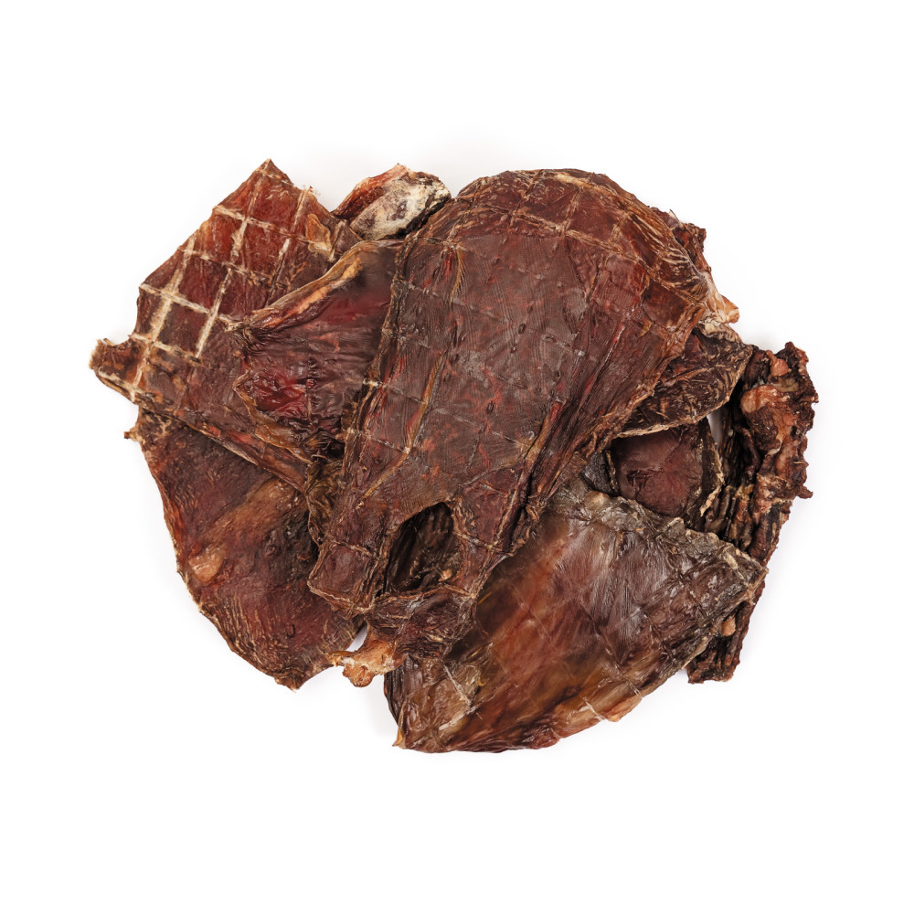 Яловичий стравохід – мінімум неприємних асоціацій для людей та максимум смаку для собак. Чипси зі стравохода мають чудовий вигляд, в міру щільні, не мають неприємного запаху та смакують із користю. Це надзвичайно ароматні й апетитні шматочки, від одного вигляду яких в улюбленців тече слинка. Щільна структура продукту дає песикам можливість досить довго жувати ласощі, водночас масажуючи ясна, очищуючи зуби залишків їжі.