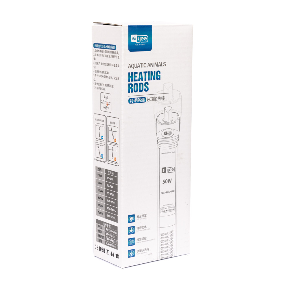 Серія обігрівачів YGH для акваріума виготовлена з надміцного скла. Завдяки широкому діапазону регулювання температур підходить для різного типу акваріумів та їх мешканців. Простий у встановленні та експлуатації, кріплення за допомогою присосок. Зверху присутній зручний регулятор для налаштування бажаної температури. Обігрівач підтримує встановлену користувачем температуру.