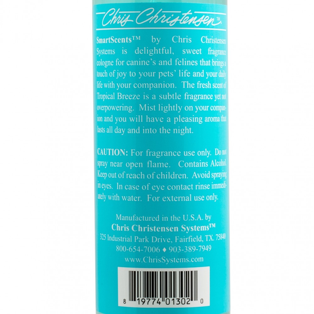 Парфуми Chris Christensen SmartScents залишають чудовий аромат із солодкими нотами тропічного бризу. Парфум тримається весь день! Просто легенько побризкайте на вашого кота чи собаку. Цей витончений аромат не надто сильний і не нав’язливий.