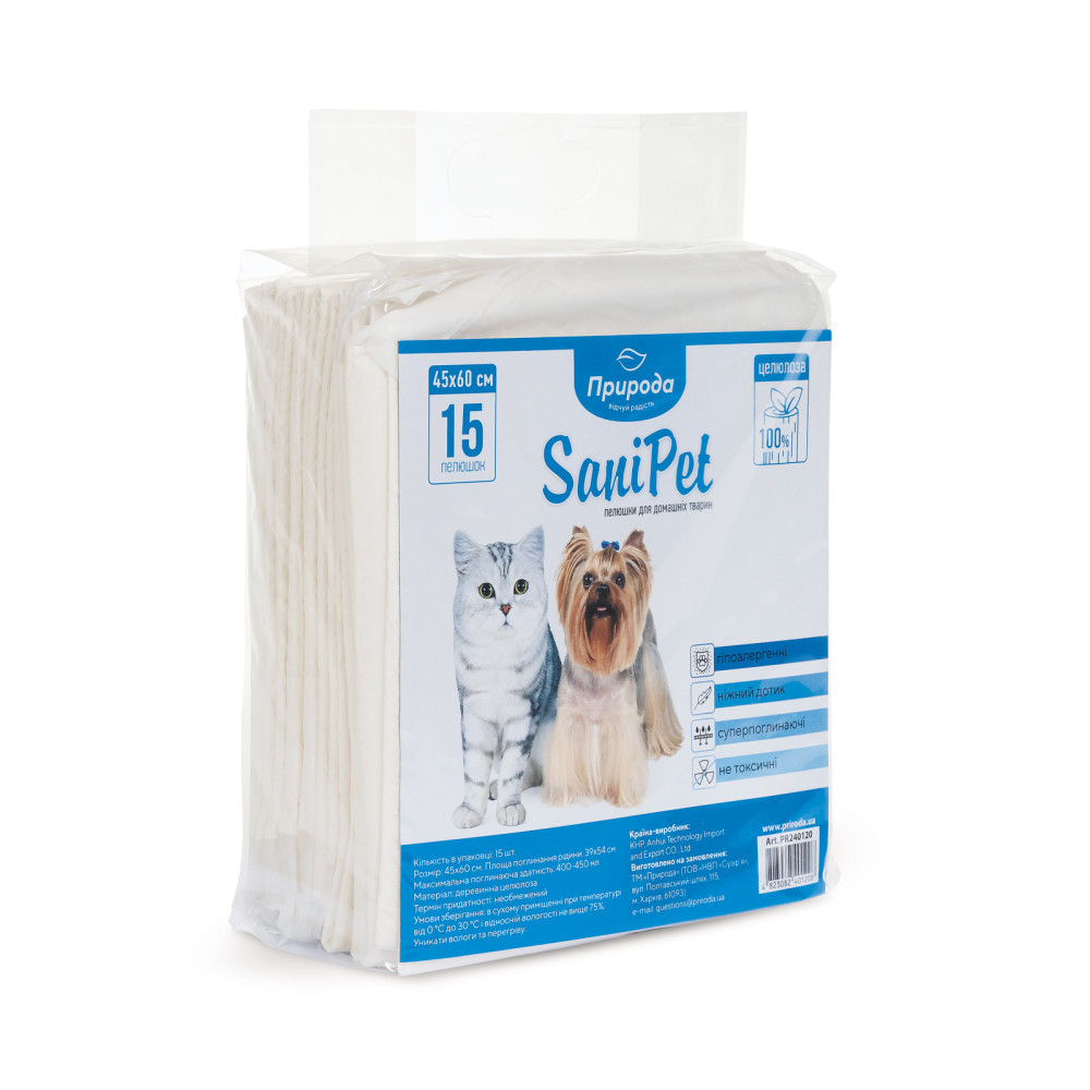 Пелюшки з нетканого полотна ТМ «Природа» чудово вбирають рідину і запахи, знадобляться як господарям цуценят, так і дорослих собак.
