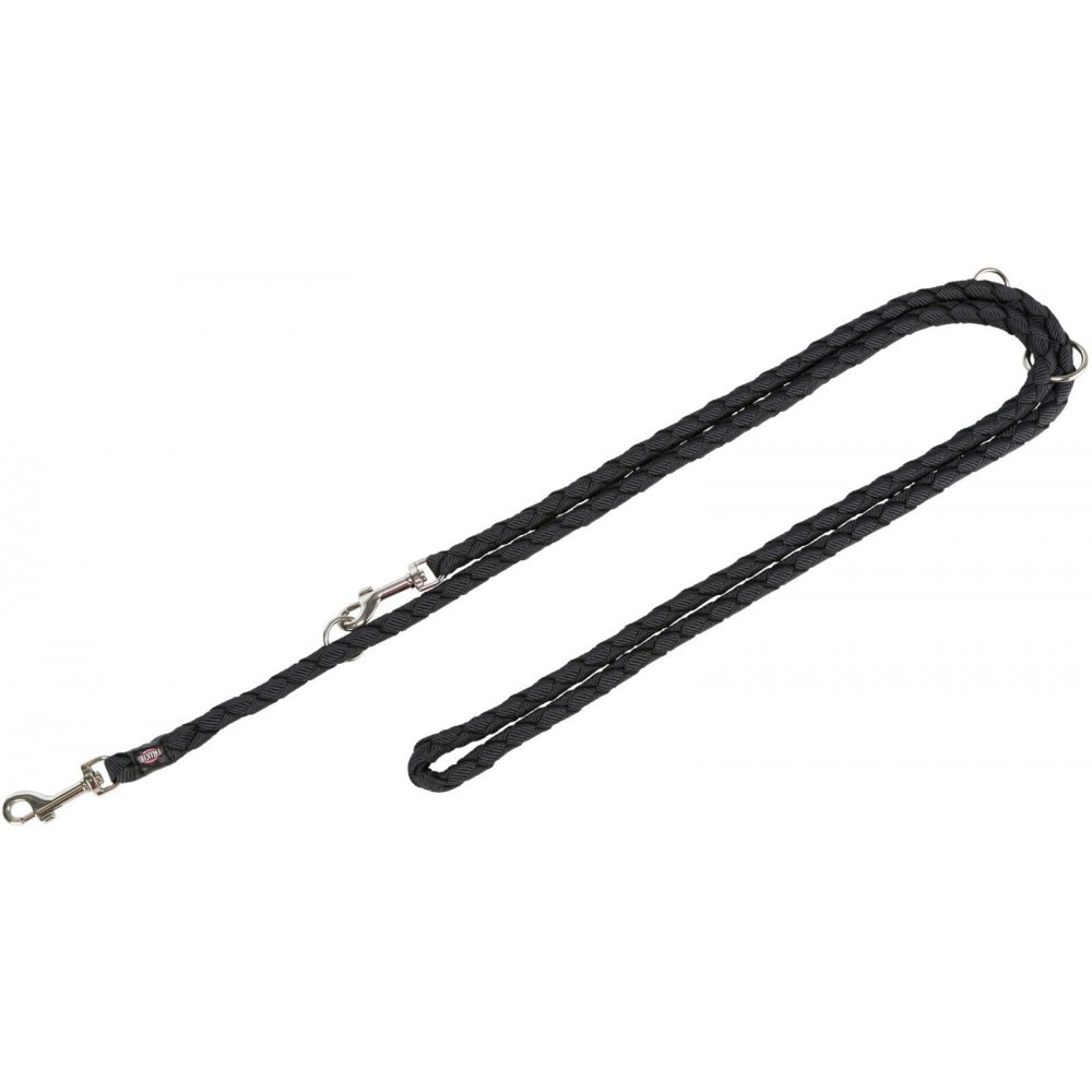 Для вигулу собак відомий німецький виробник зоотоварів Trixie пропонує вам свою розробку - Повідець-перестібка "Cavo" нейлон,L–XL: 2.00 м/18 мм, чорний. Даний елемент амуніції необхідний для вигулу і дресирування собак. Завдяки йому ви можете контролювати довжину повідка, вигулювати одночасно двох собак або для звільнення рук під час довгих прогулянок.