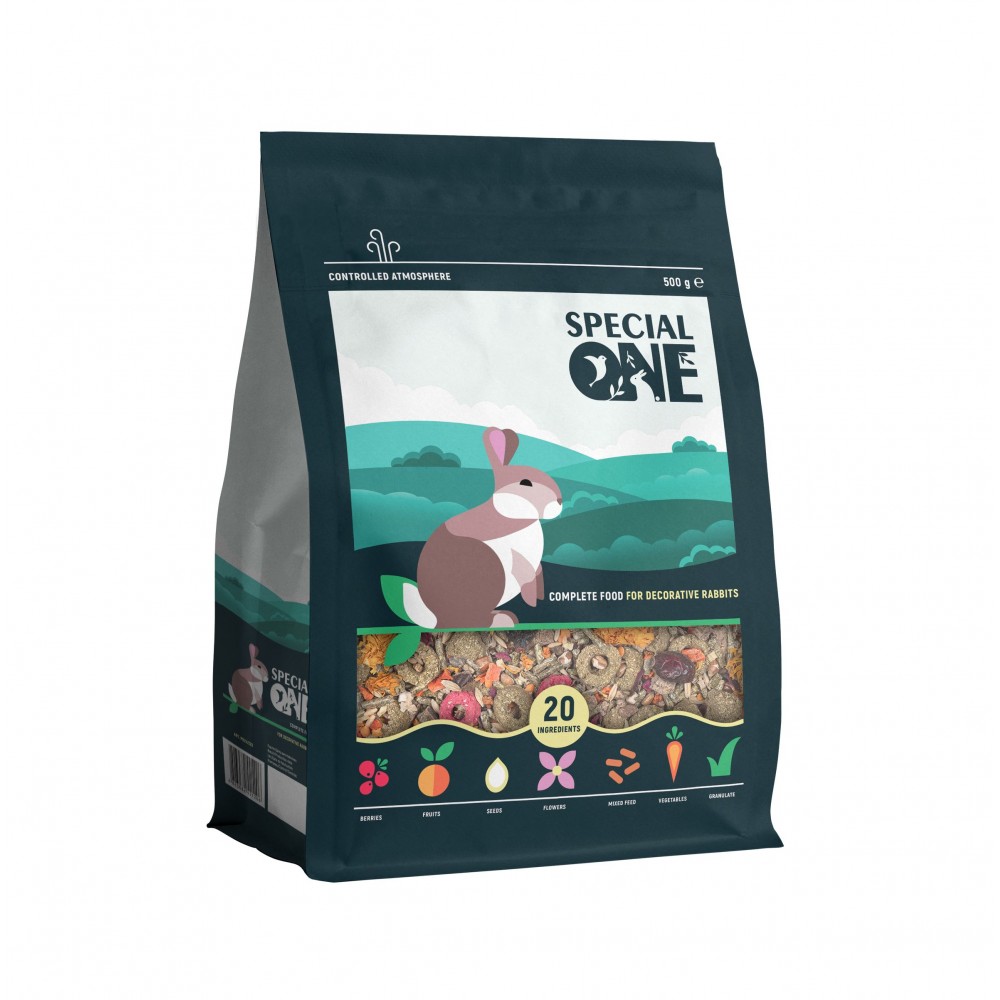 Унікальний корм включає відбірні трави, вітамінізований комбікорм, насіння та інші інгредієнти з природного ареалу проживання кроликів. Рецептура гармонійно поєднала 20 інгредієнтів, серед яких цілющі трави, сушені фрукти, овочі, а також рідкісні делікатеси – шипшина, гібіск, пастернак. Корм включає корисний протеїново-мінеральний гранулят, який покращує загальний стан здоров’я, сприяє зміцненню зубів та кісток, поліпшенню стану хутра.