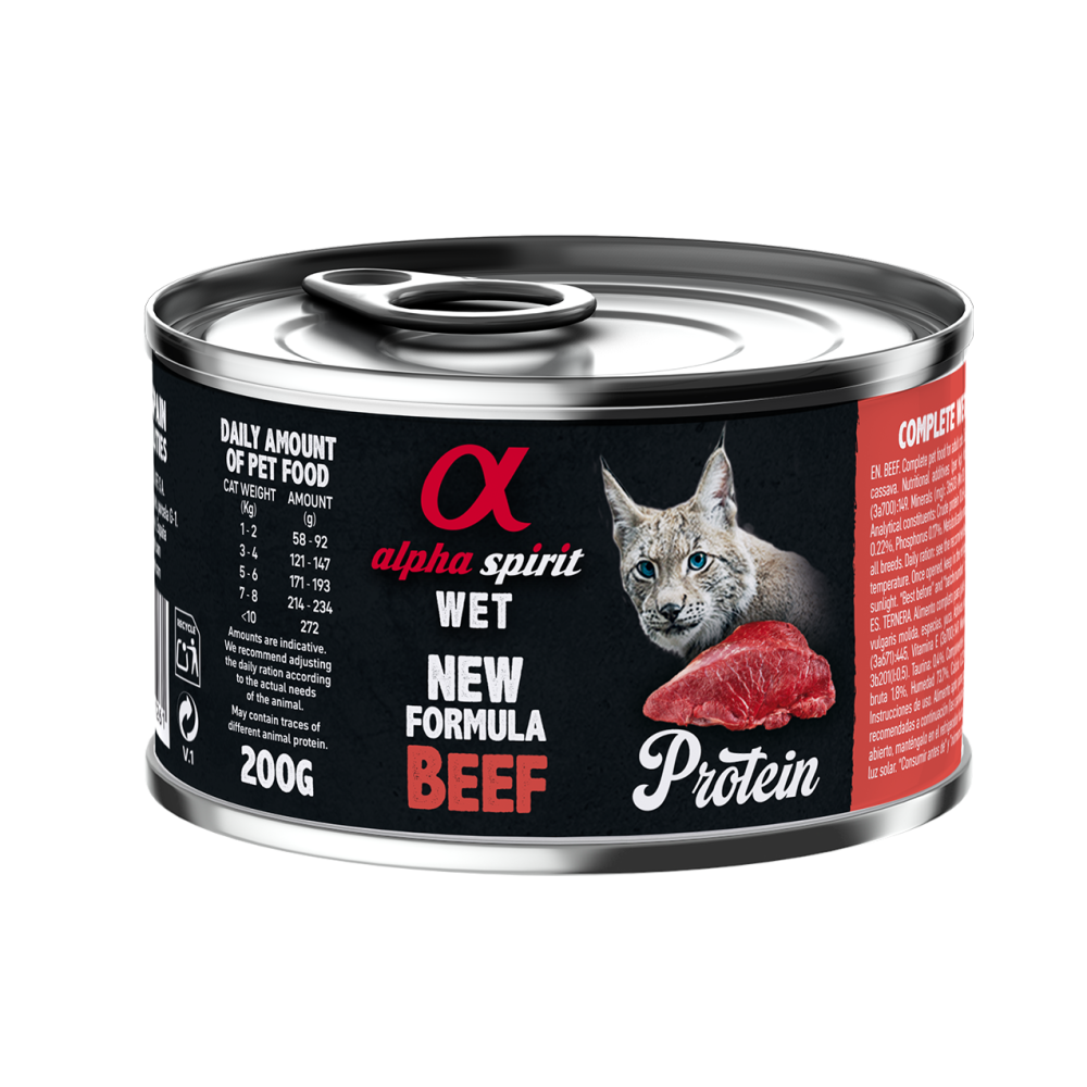 Ніжна та смачна рецептура вологого корму Альфа Спірітз яловичиною (94%) у формі паштету – це вишуканий витвір кулінарного мистецтва, створений для задоволення потреб дорослих котів всіх порід.