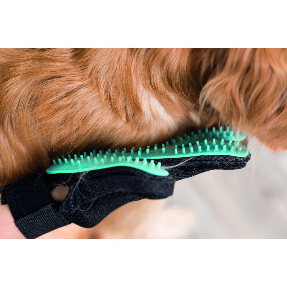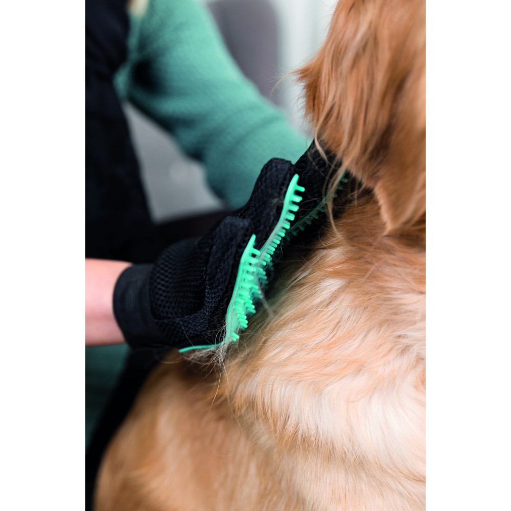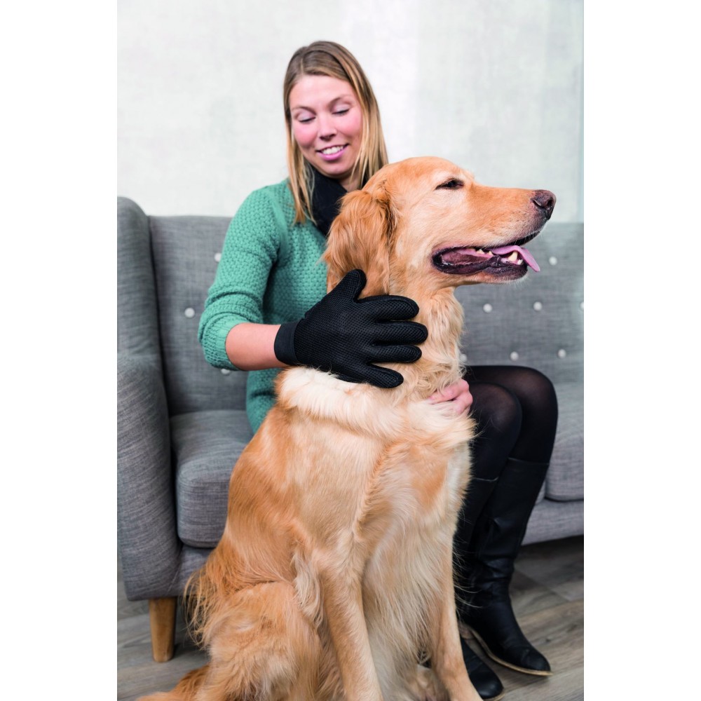 Рукавичка Trixie Fur Care Glove — зручний аксесуар для делікатного догляду за шерстю тварин. Вона м’яко масажує шкіру, стимулює кровообіг і допомагає видаляти зайве та відмерле волосся, не викликаючи дискомфорту навіть у чутливих улюбленців.