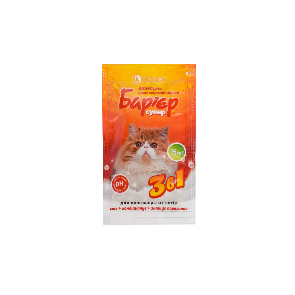 Шампунь Бар'єр супер протипаразитарний для довгошерстих котів (15 мл)