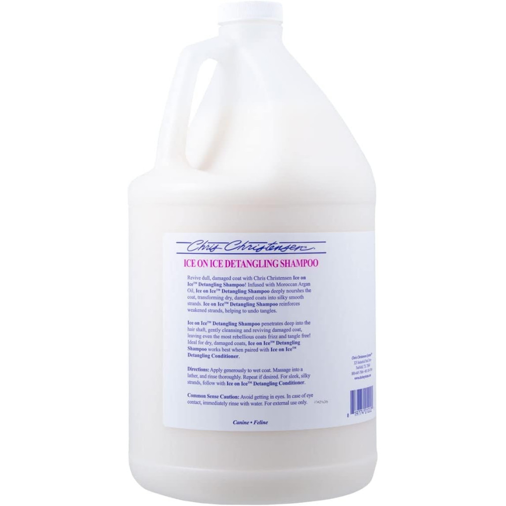Шампунь для розплутування шерсті Ice on Ice від Chris Christensen зі зволожуючою марокканською аргановою олією. Його вдосконалена формула глибоко проникає в стрижень волосини, відновлюючи природний баланс вологи в шерсті, усуваючи при цьому ковтуни та сплутування шерсті зсередини.