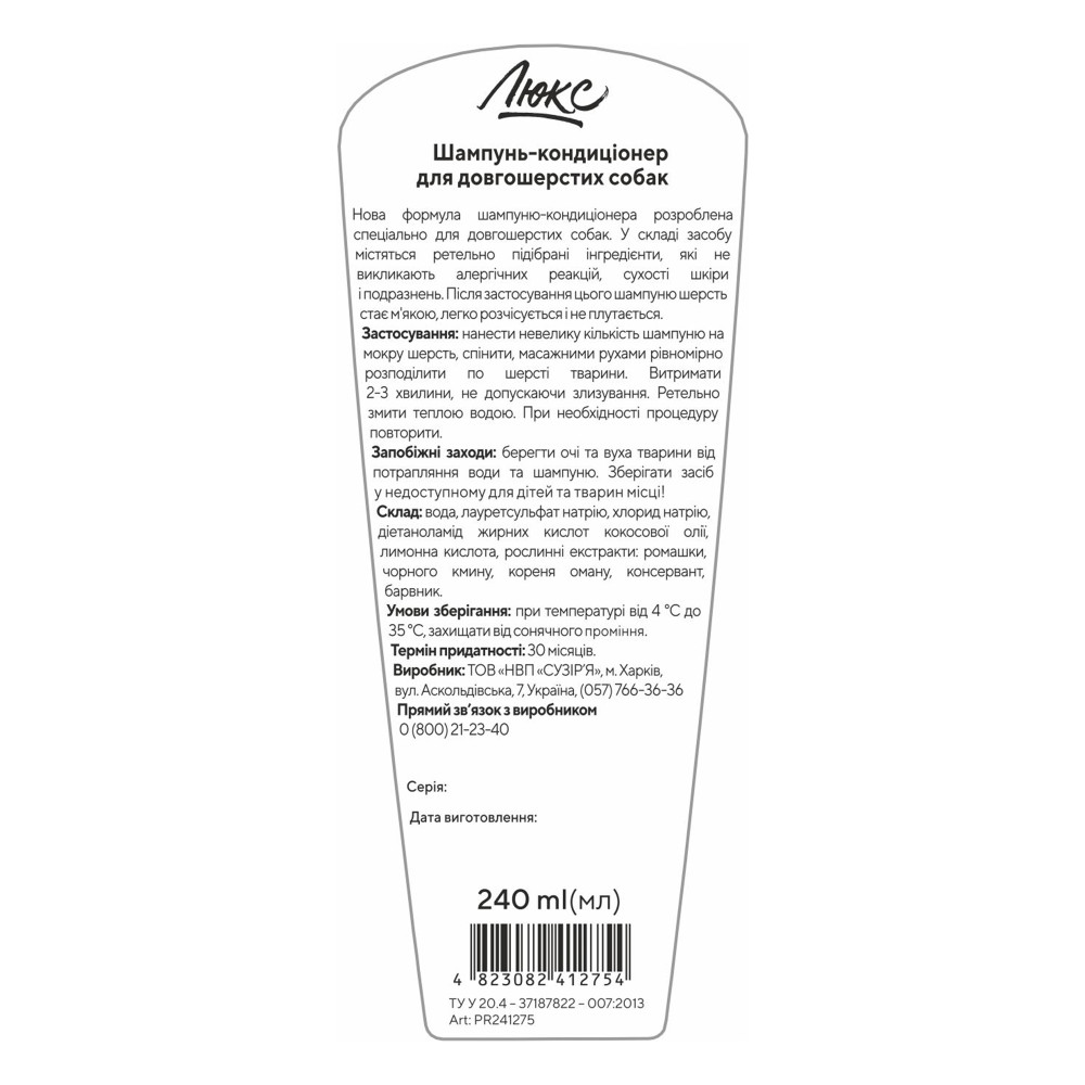 Нова формула шампуню-кондиціонера розроблена спеціально для довгошерстих собак. У складі засобу містяться ретельно підібрані інгредієнти, які не викликають алергічних реакцій, сухості шкіри і подразнень. Після застосування цього шампуню шерсть стає м’якою, легко розчісується і не плутається.