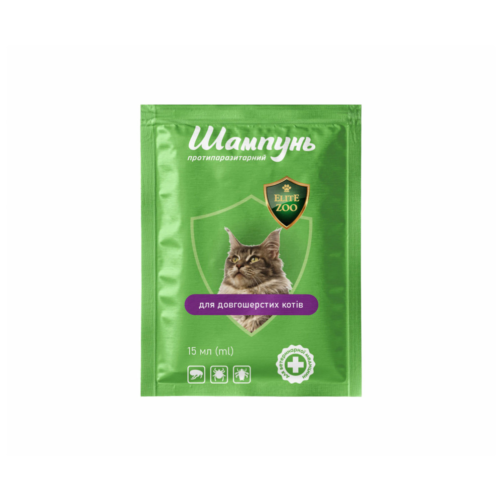 Шампунь протипаразитарний ELITE ZOO для довгошерстих котів (15 мл)