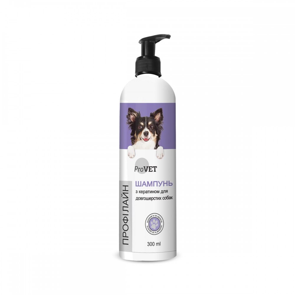 Шампунь з кератином м'яко очищує, полегшує догляд за шерстю і її розчісування, запобігає появі ковтунів. Кератин заповнює пошкоджені ділянки волосяних кутикул, відновлює структуру шерсті, роблячи її блискучою і здоровою.
