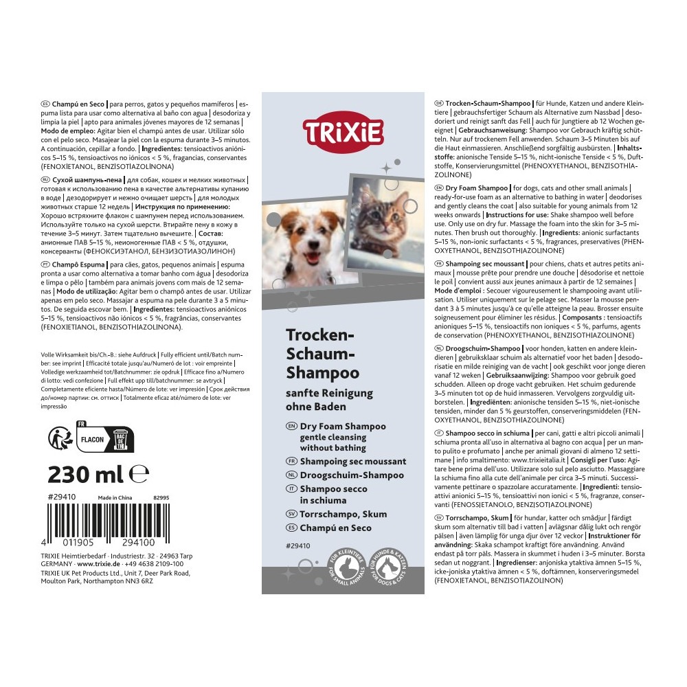 Сухий шампунь-пінка Trixie – ідеальне рішення для швидкого та ефективного догляду за шерстю вашого улюбленця без використання води!