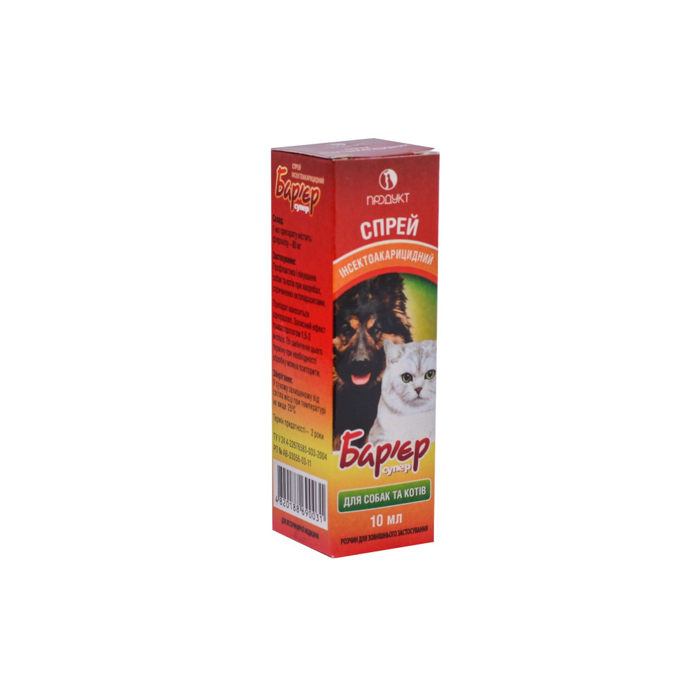 Собакам: масою тіла 2-10 кг – 1 мл препарату (8 натискань на кришку-розпилювач);