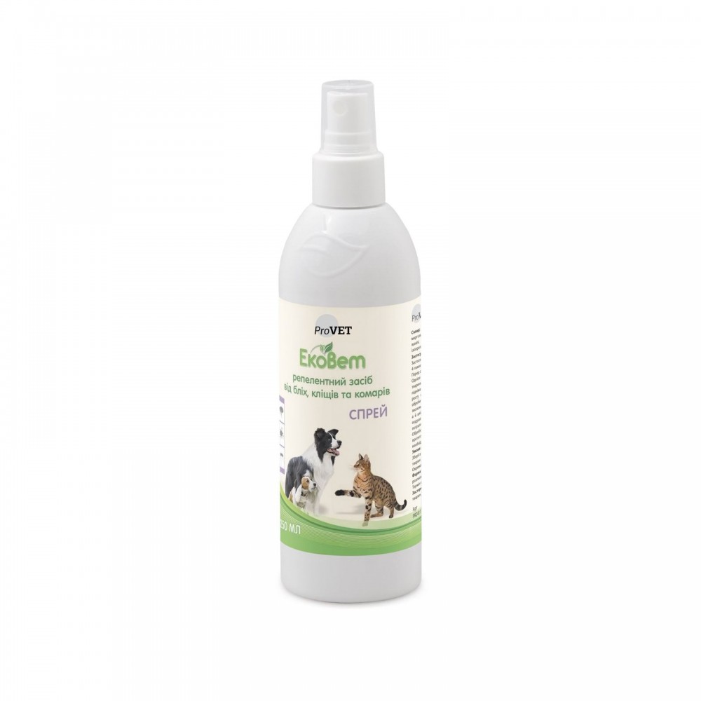 Репелентний спрей ЕкоВет для зовнішнього застосування для котів та собак (250 мл) захищає від найбільш розповсюджених видів ектопаразитів та дбає про бездоганний зовнішній вигляд вашого улюбленця.