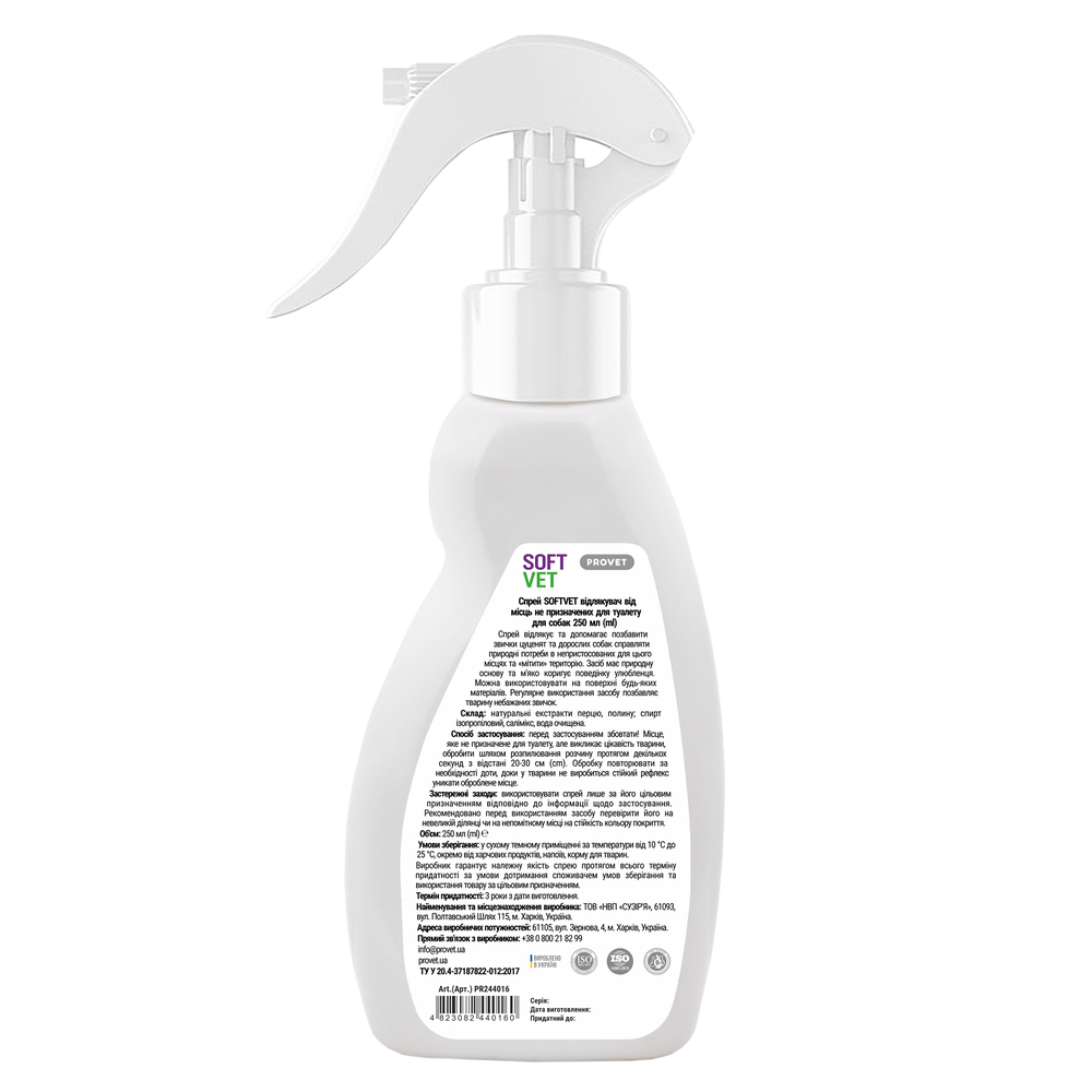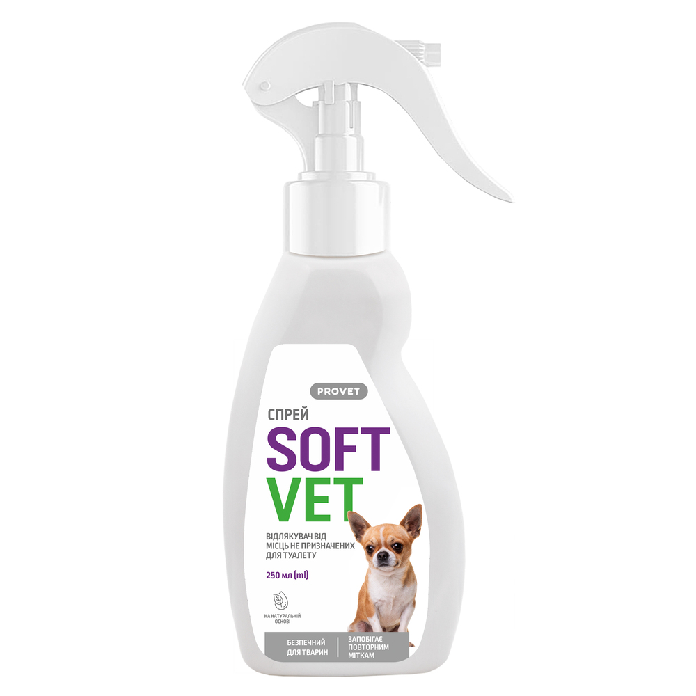 Спрей відлякує та допомагає позбавити цуценят та дорослих собак звички справляти природні потреби в непристосованих для цього місцях та «мітити» територію. Засіб має природну основу та м’яко коригує поведінку улюбленця. Можна використовувати на поверхні будь-яких матеріалів. Регулярне використання засобу позбавляє тварину небажаних звичок.