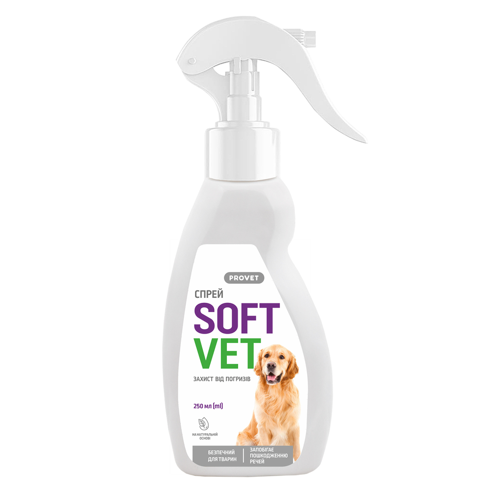 Спрей захищає від погризів та допомагає позбавити цуценят та дорослих собак звички пошкоджувати меблі, килими, взуття й інші предмети. Засіб має природну основу ― відлякуючий для собак запах і гіркий смак. Можна використовувати на поверхні з будь-яких матеріалів. Регулярне використання засобу позбавляє тварину звички гризти та пошкоджувати речі.