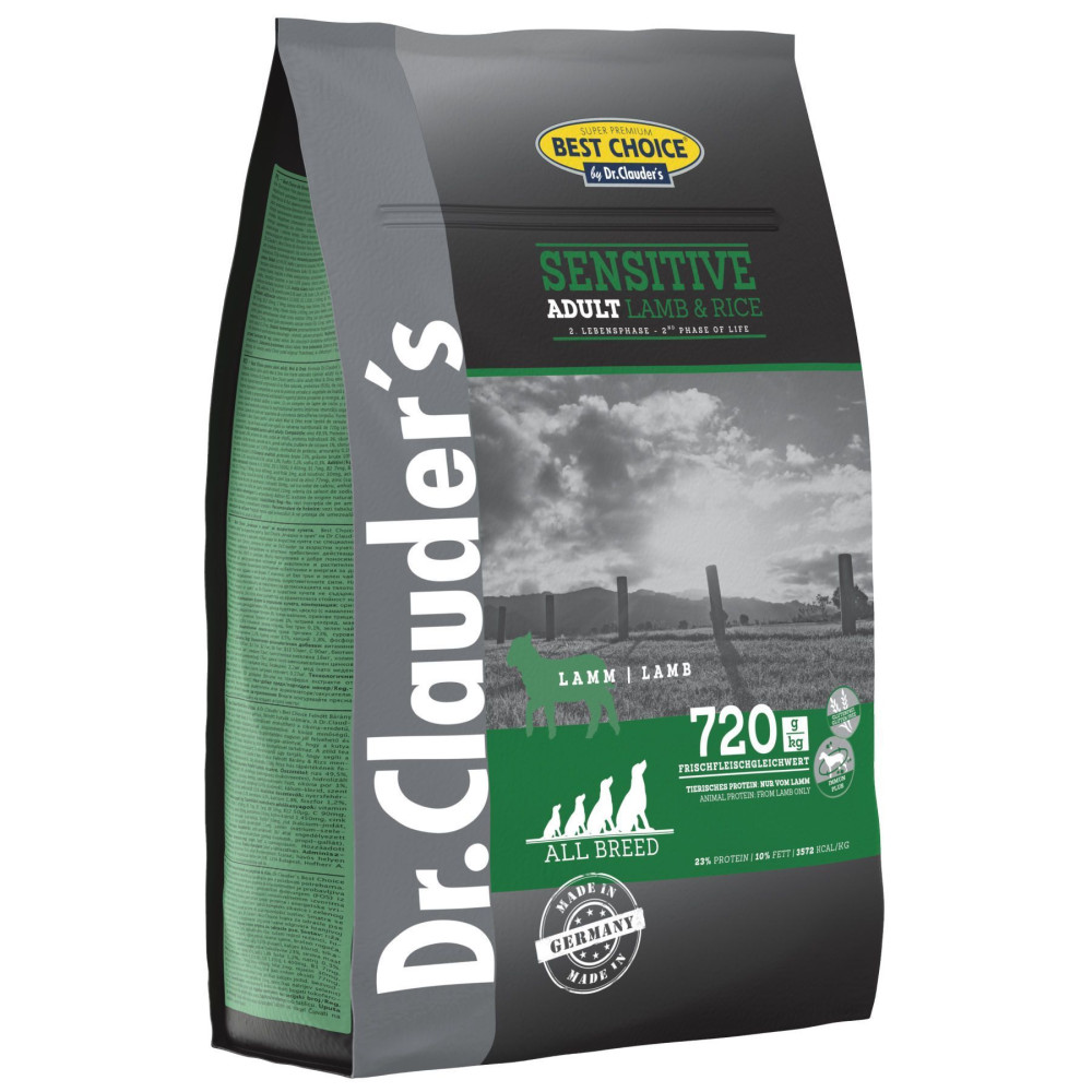 Др.Клаудерс Сенсетів Едалт Ягня та Рис  - повнораціонний сухий корм для дорослих собак усіх порід з чутливим травленням та втратою апетиту. Відмінно засвоюється завдяки пребіотичним волокнам, гіпоалергенний, завдяки єдиному джерелу тваринного та рослинного білка. Калорійність особливо добре збалансована вмістом протеїнів, підтримує здоров'я собаки та хорошу фізичну форму. Містить комплекс чортополоху, який сприяє детоксикації організму та екстракт зеленого чаю, який зміцнює захисні сили організму. Не містить пшениці, не містить кукурудзи. Без додавання консервантів.