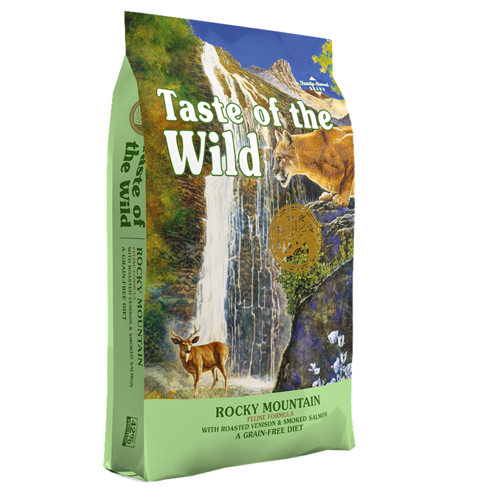 Саме тому був створений Taste of the Wild Rocky Mountain Feline – повноцінний та збалансований беззерновий корм класу холістик для котів усіх порід на усіх стадіях життя на основі унікальних м’ясних протеїнів, щоб вони харчувалися так само, як їхні предки. Тейст оф зе Вайлд дає природну енергію і забезпечує інстинктивні смакові переваги Вашого улюбленця.