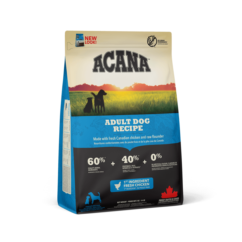 Коли це стосується корму ACANA, кожен інгредієнт має значення. Саме тому рецептура корму ACANA Adult Dog Recipe створюється з турботою, щоб забезпечувати всі потреби дорослих собак у харчуванні. Рецептура АКАНА Едалт Дог Ресіпе на 60% переповнена якісними м'ясними інгредієнтами, такими як м'ясо канадських курчат та сирої камбали та на 40% збалансована фруктами, овочами та травами.