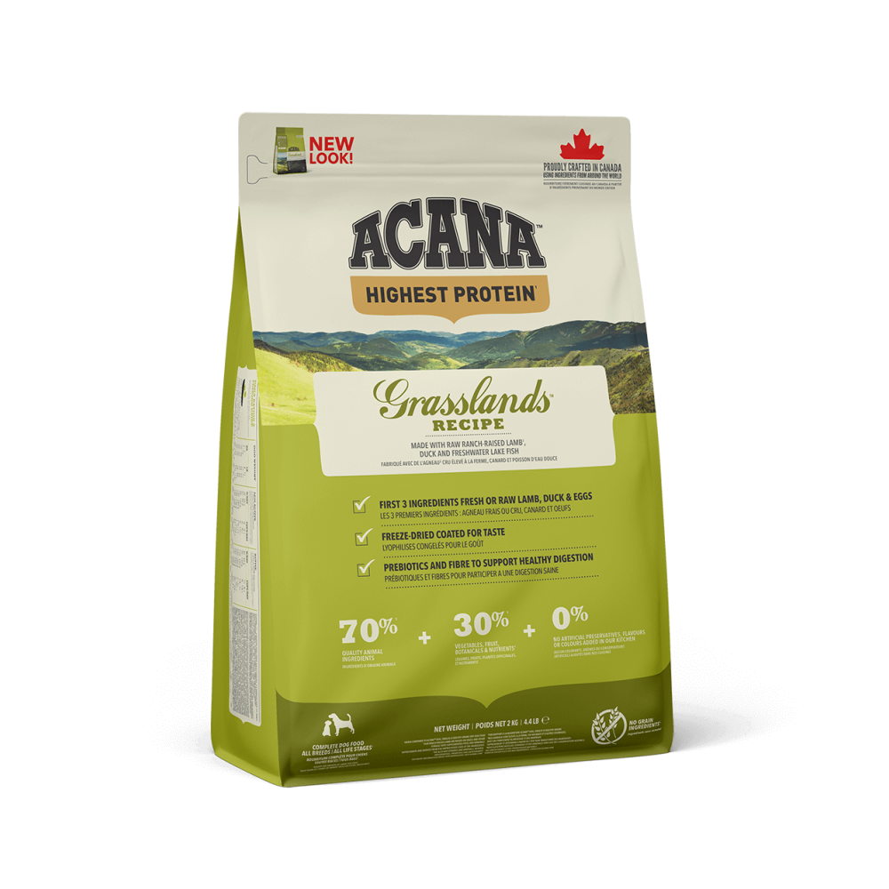 Раціон ACANA Grasslands Dog створений у відповідності до рівнів поживності встановлених FEDIAF для собак всіх стадій життя, включаючи період зростання цуценят великих порід.