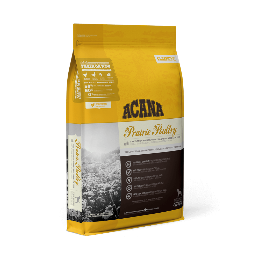 Раціон ACANA Prairie Poultry створений у відповідності до рівнів поживності встановлених FEDIAF для собак всіх стадій життя, включаючи період зростання та собак великих порід.