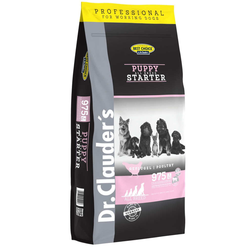 Др.Клаудерс Бест Чойс Паппі Стартер - повнораціонний сухий корм для цуценят з 2-тижневого віку. Дуже важливим для цуценят є: енергетична цінність корму, збалансована вмістом протеїну; смакові властивості завдяки підбору якісних інгредієнтів; відповідний розмір та структура крокети; легке засвоювання завдяки пребіотичним волокнам (FOS). Підтримує природній імунний захист завдяки вмісту комплексу маннан-олігосахаридів (MOS), фрукто-олігосахаридів (FOS) та дріжджових бета-глюканів, які позитивно впливають на чутливу роботу шлунково-кишкового тракту собаки та корисну мікробіоту. Не містить пшениці, не містить кукурудзи. Без додавання консервантів.