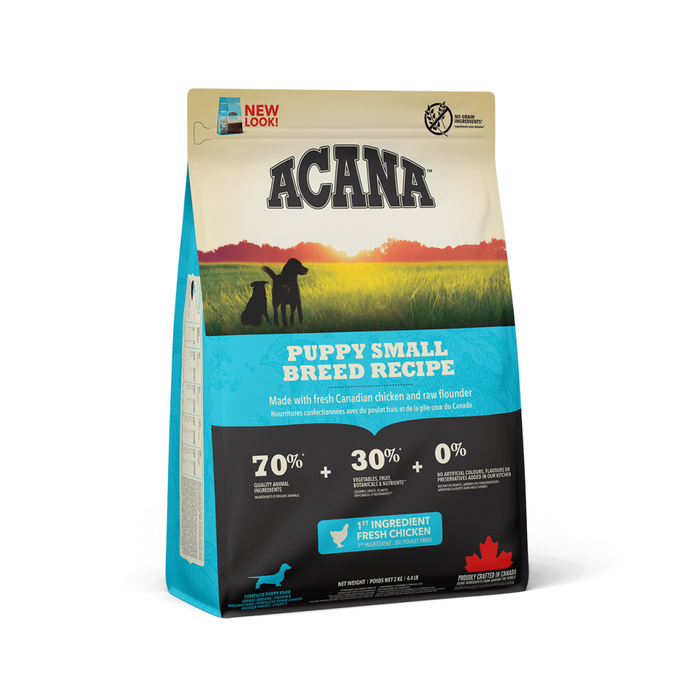 Коли це стосується корму ACANA, кожен інгредієнт має значення. Саме тому рецептура корму ACANA Puppy Small Breed Recipe створюється з турботою, щоб забезпечувати всі потреби дорослих собак малих порід у харчуванні. Рецептура АКАНА Паппі Смол Брід Ресіпе на 70% переповнена якісними м'ясними інгредієнтами, такими як м'ясо канадських курчат та сирої камбали та на 30% збалансована фруктами, овочами та травами.