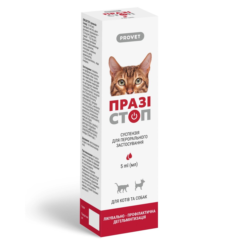 Спосіб застосування: Перед застосуванням збовтати! Препарат застосовують тваринам індивідуально, одноразово під час вранішньої годівлі з невеликою кількістю корму або вводять примусово на корінь язика за допомогою шприц-туби у дозі: котам (у т.ч. кошенятам), собакам (у т.ч. цуценятам) - 1 мл суспензії на 1 кг маси тіла тварини. Дотримання попередньої голодної дієти і застосування проносних засобів не потрібно. При сильній інвазії дегельмінтизацію рекомендується повторити через 10 діб. Дегельмінтизацію вагітних і годуючих самок за необхідності проводять після консультації з ветеринарним лікарем, за 3 тижні до пологів і через 2-3 тижні після пологів.